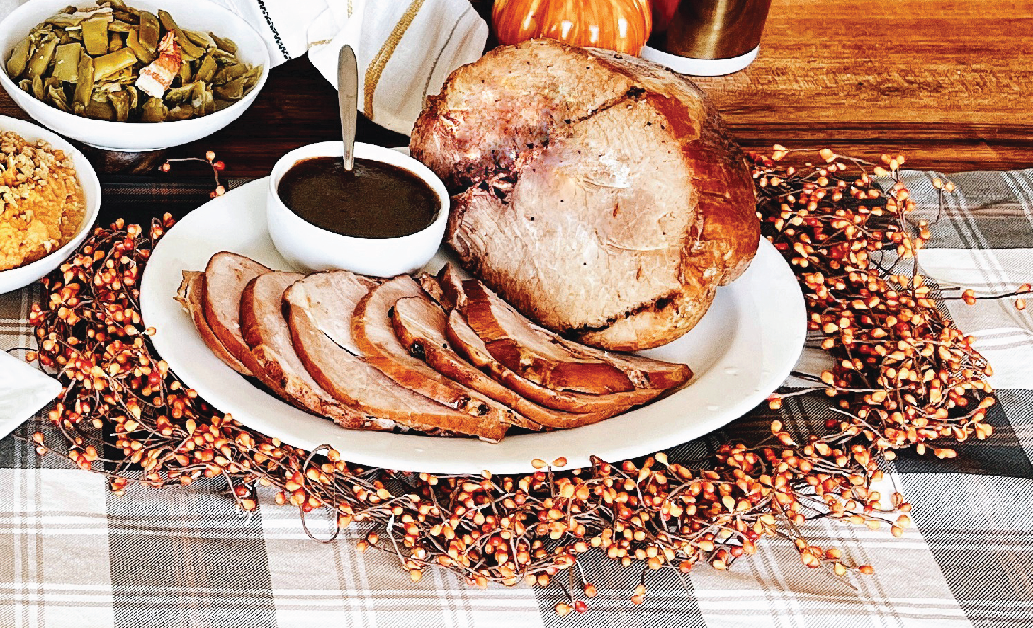 Cornbread Dressing • Green Beans • Sweet Potato Casserole • Mashed Potatoes • Turkey Gravy • Cranberry Salad • Bourbon-Honey Brown Sugar Ham Glaze • Dinner Rolls • Your Choice of Pie